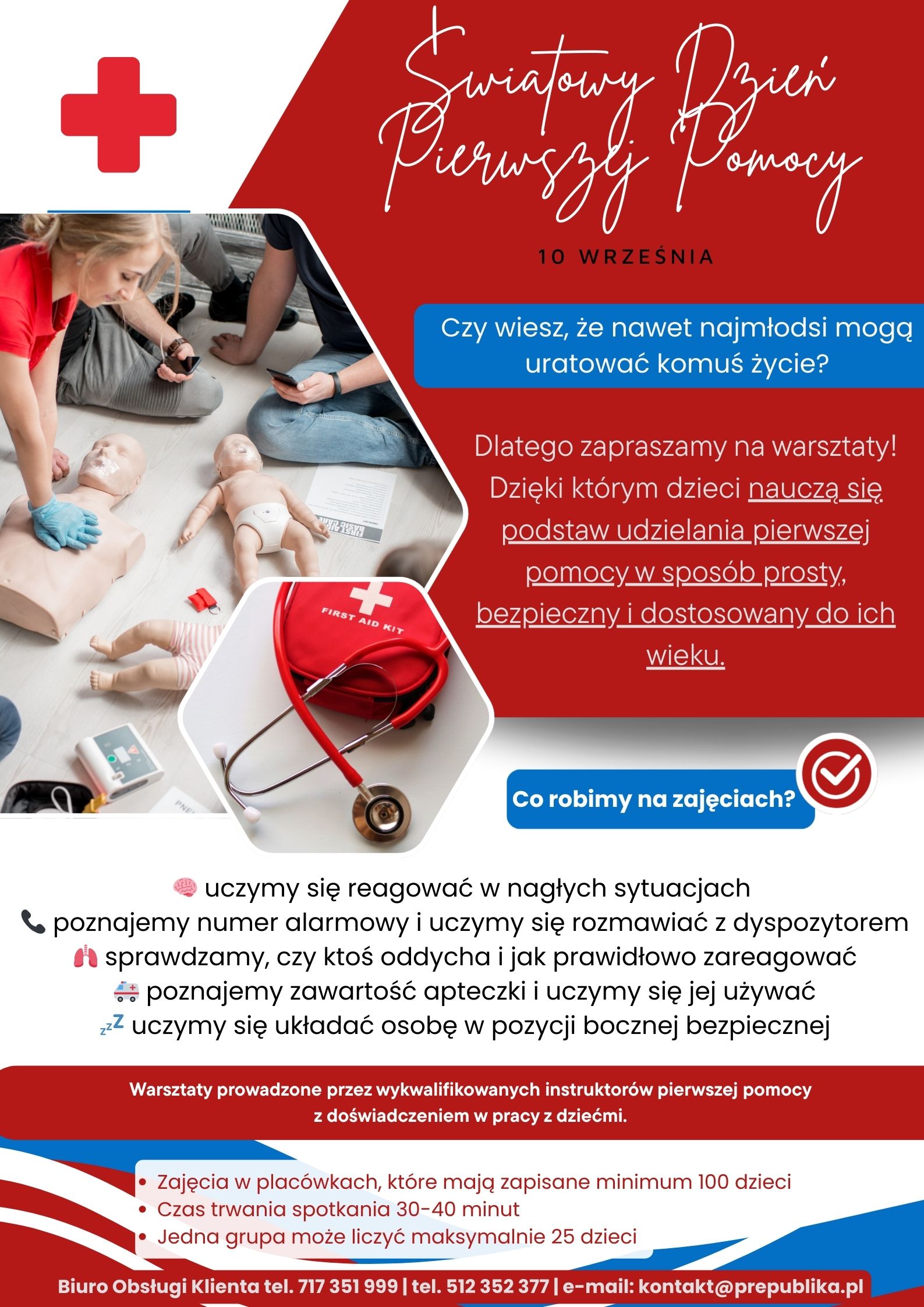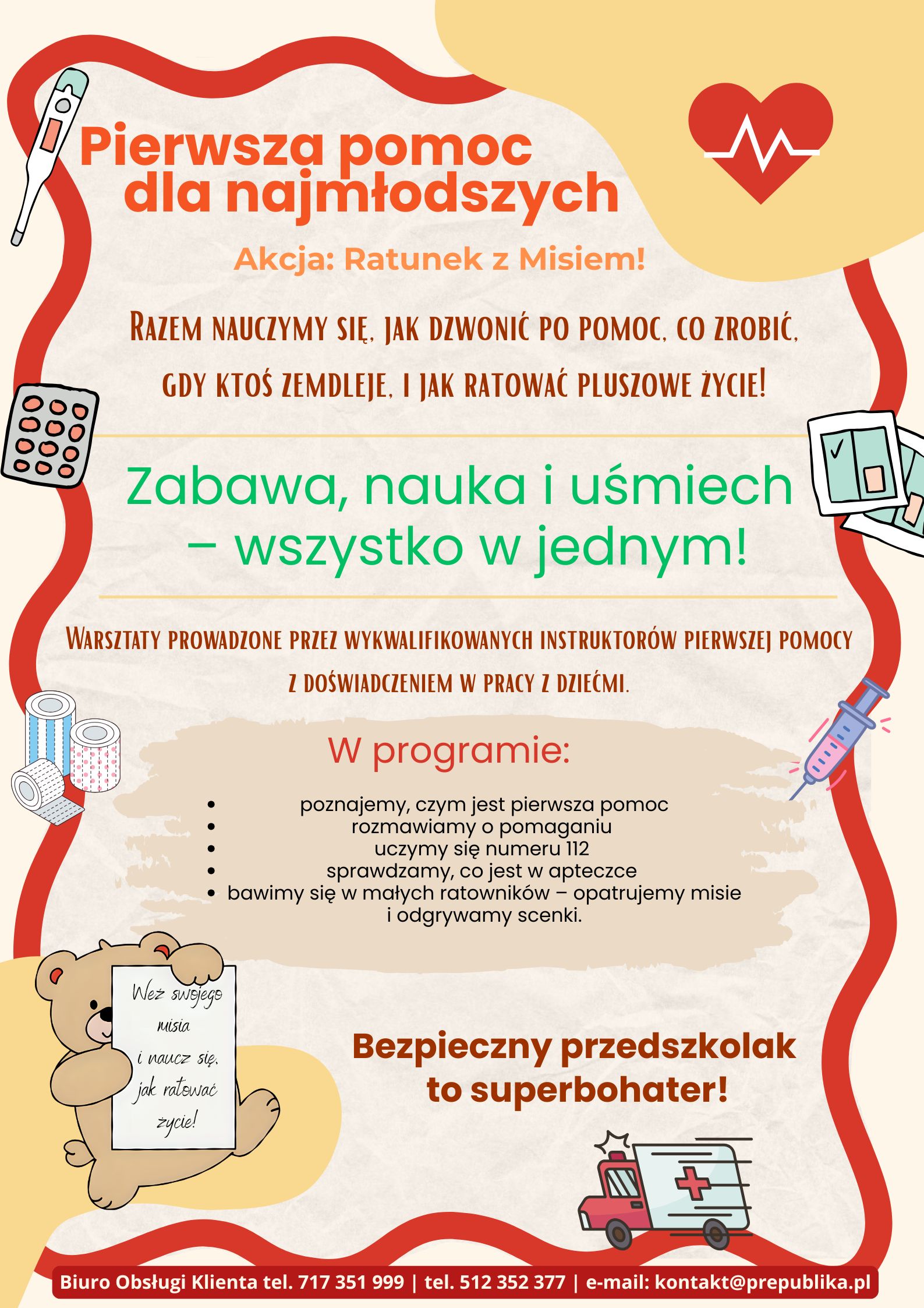 📌 Warsztaty prowadzone są przez wykwalifikowanych instruktorów pierwszej pomocy z doświadczeniem w pracy z dziećmi.
